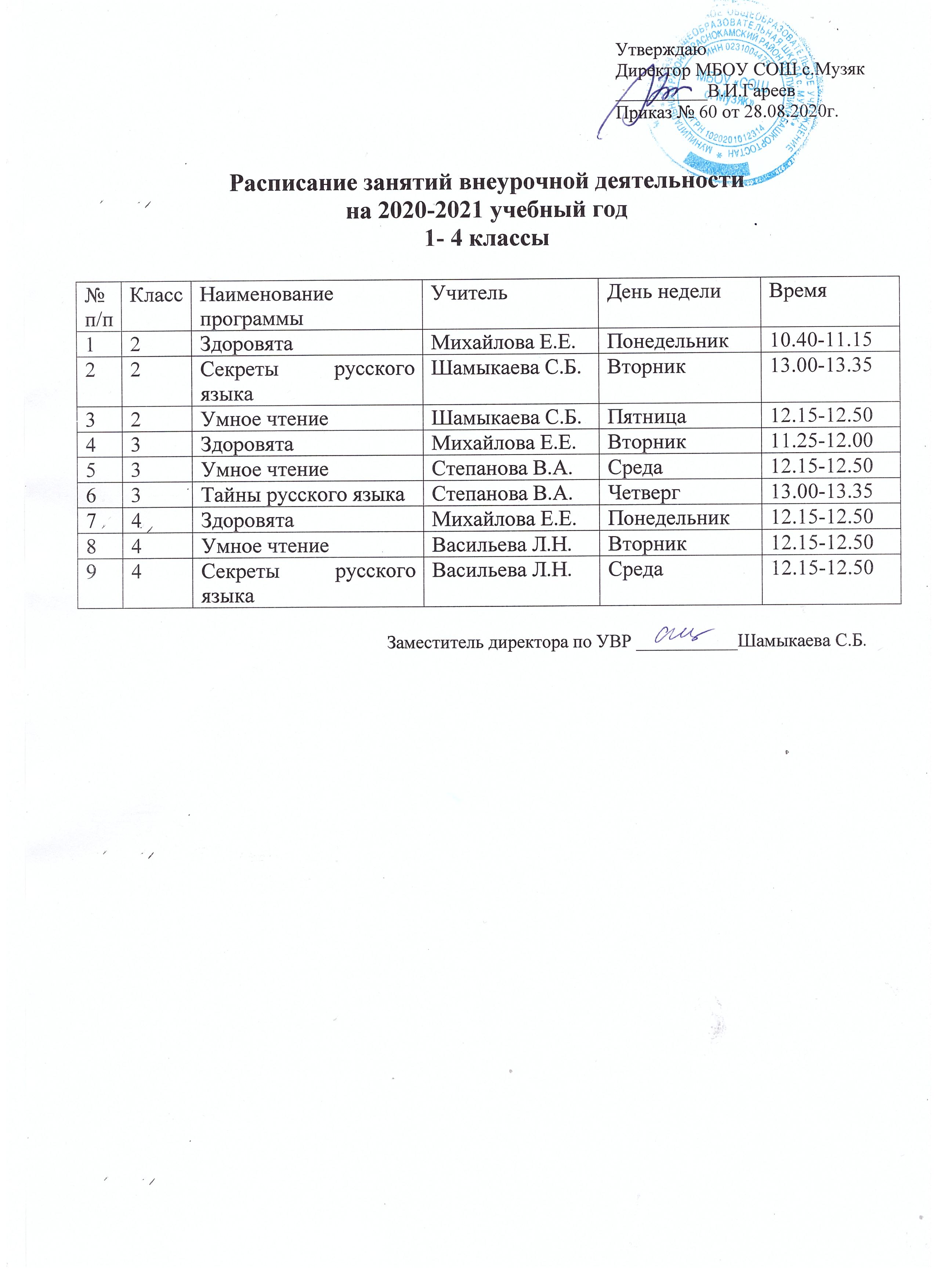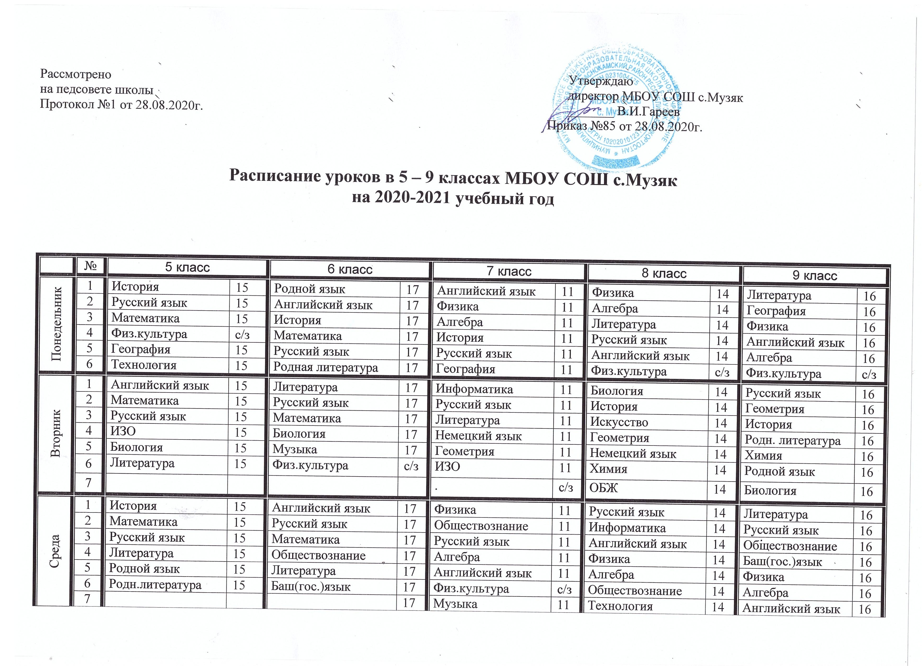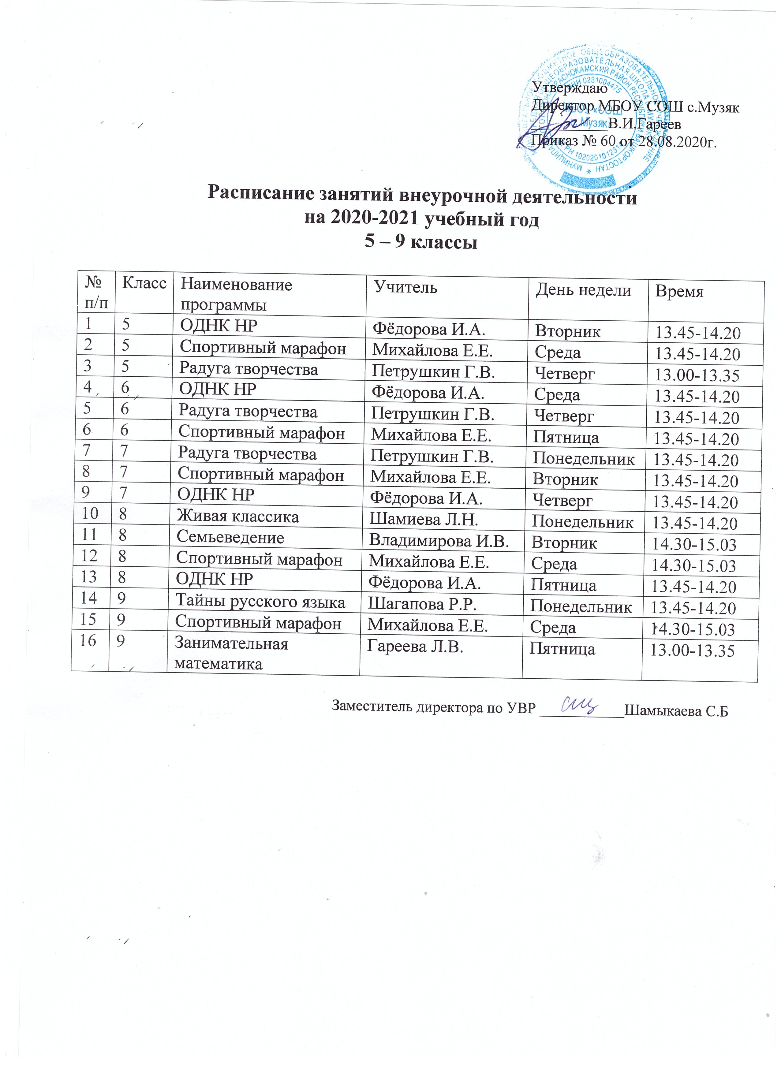 Расписание